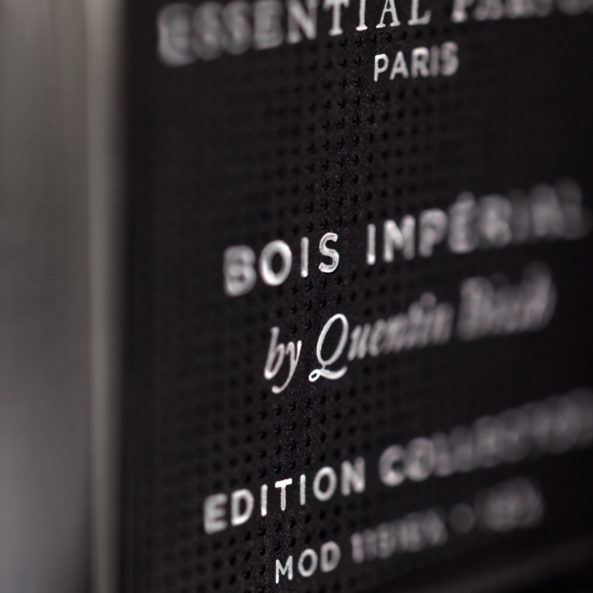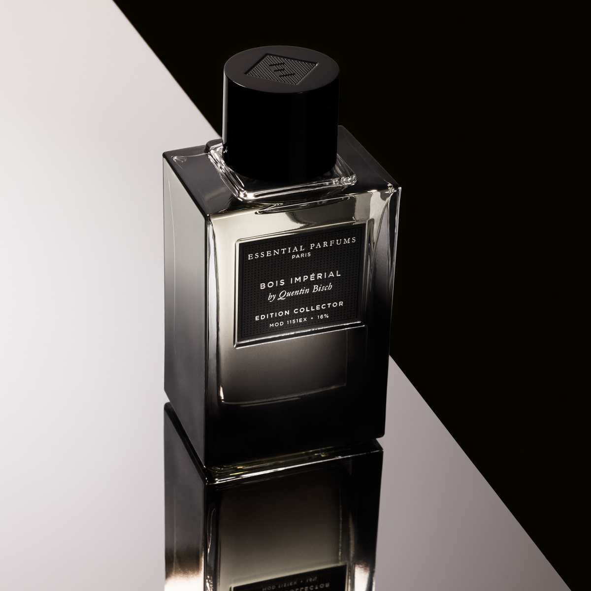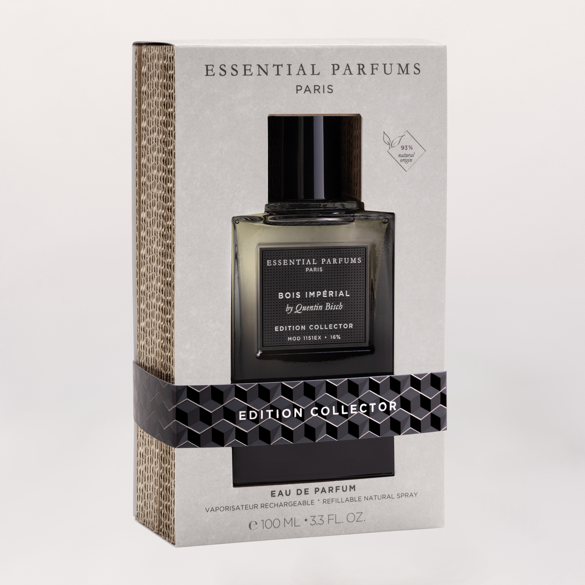 „W edycji kolekcjonerskiej chcieliśmy dać zapachowi Bois Impérial oprawę, która z uderzającą intensywnością oddałaby olfaktoryczną dwoistość tej niezapomnianej kompozycji. Projekt flakonu jest tańcem światła i cienia, co odzwierciedla zarówno świetlistą świeżość kreacji, jak i mroczniejsze nuty dzieła Quentina Bischa. Minimalistyczną, architektoniczną sylwetkę flakonu akcentowanego czarnym lakierem gradientowym, podkreślają śmiałe, graficzne kontrasty jego etykiety – krucza czerń oraz lśniące srebro – oferując wyrafinowaną elegancję z awangardową estetyką. Całość zdaje się być zawieszona między światłem a cieniem, co doskonale odzwierciedla charakter tego kultowego już zapachu.” – Géraldine Archambault, założycielka marki Essential Parfums