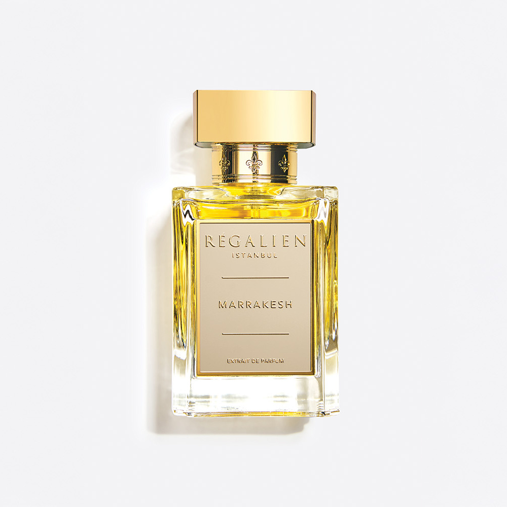 Perfumy Regalien Istanbul Marrakesh przenoszą nas w samo serce tętniącego życiem Maroka, gdzie aromat przypraw, energia żywych kolorów i zapierające dech krajobrazy mieszają się z majestatycznym pięknem miasta. Ta orientalno-korzenna uczta dla zmysłów, oddaje atmosferę marokańskich souków, z powietrzem nasyconym aromatem egzotycznych przypraw, aromatycznych ziół i mistycznego kadzidła. Olejek z petitgrain, cytryn i liści cedru budzi zmysły, a zapach świeżej lawendy tańczy w powietrzu z mieszanką orientalnych przypraw ogrzanych ciepłem pustynnego wiatru. Słodka ambra w połączeniu z ciemną zielenią paczuli i kadzidła, ujawniają tajemniczą i zmysłową stronę tej olfaktorycznej podróży. Każdy wdech przynosi nam nowe doznania, podczas gdy kojąco ciepły podmuch znad Sahary uspakaja odurzone mnogością doznań zmysły. Powstała w ten sposób kreacja to wielowarstwowy i wieloaspektowy zapach dla niespokojnych duchów, wiecznie poszukujących wrażeń. Przyciąga mistyczną siłą, niczym sekret czekający na odkrycie w pustynnym mieście.