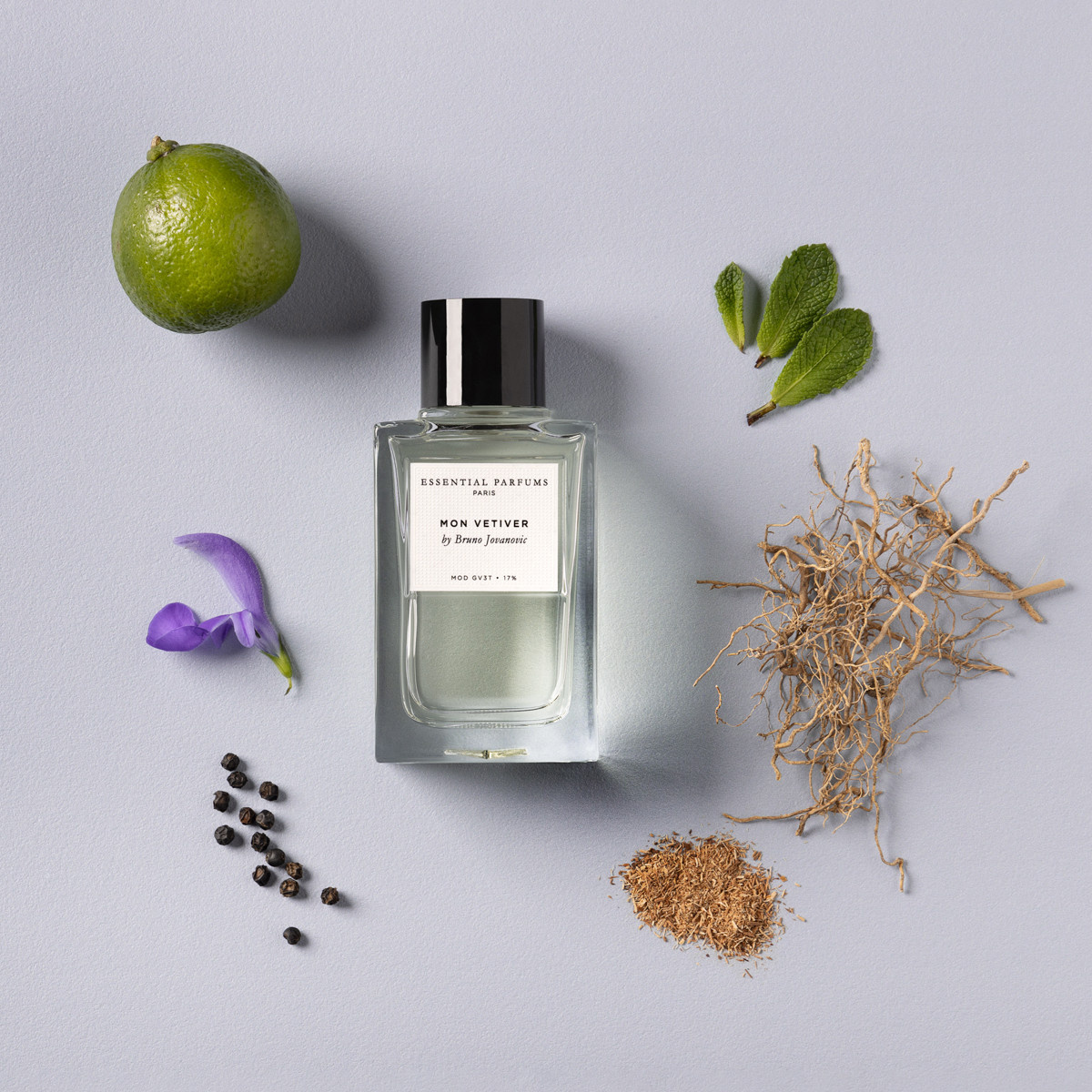 Perfumy Essential Parfums Mon Vetiver to kompozycja charyzmatyczna i elegancka ale jednocześnie zaskakująca, zbudowana wokół naturalnej esencji haitańskiej wetywerii. Nieoczekiwany akord ginu nasyca zapach świeżością pochodzącą z meksykańskiej limonki oraz ziołową aromatycznością esencji jałowca. Akcenty aromatyczne przynosi także naturalna lawenda oraz esencja goryczki. Intensywność oraz drzewny charakter zapachu potęgują tajemnicze akordy kaszmeranu, naturalnej paczuli z Indonezji oraz drzewa gwajakowego. Zgodnie z filozofią marki w skład wchodzą tylko składniki pozyskiwane w sposób zrównoważony. Nie inaczej jest z wetywerią, certyfikowaną ze względu na zrównoważony wpływ na środowisko oraz wsparcie społeczności rolniczych na Haiti.
