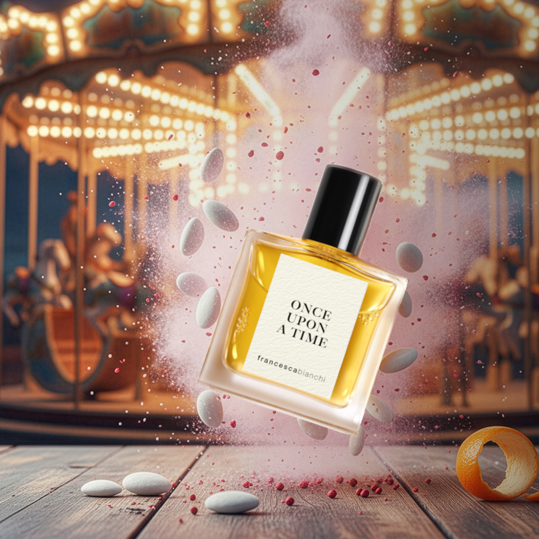 Perfumy Francesca Bianchi Once Upon a Time to słodki, kojący zapach przepełniony wspomnieniami i pozytywnymi emocjami. Gdyby świat miał się kończyć, które wspomnienia chciałbyś zachować? Może moment pieczenia w kuchni ulubionego ciasta z babcią albo z kimś, kto troszczył się o Ciebie w dzieciństwie. Zapach świeżo obranej mandarynki w małych dłoniach, albo słodycz waty cukrowej z wesołego miasteczka, do którego zabierał Cię ktoś bliski? Ta zmysłowo-apetyczna kreacja zbudowana jest wokół osobistych wspomnień z radości dzieciństwa, które stają się intymnymi, ciepłymi emocjami w dorosłym życiu. Puść wodze wyobraźni, zamknij oczy, ręka rodzica chwyta Twoją i prowadzi cię po łąkach, gdzie biegniesz beztrosko. Skórka mandarynki, obrana i wrzucona do kominka, trzaska aromatem olejku eterycznego. Zabawa z mąką w kuchni z cierpliwą babcią, która nas wspiera w każdej próbie. Wesołe miasteczko, które pachnie watą cukrową i karmelizowanymi orzechami. Migdałowe, słodkie konfetti, rzucane na nowożeńców podczas włoskich wesel, kuszące dzieci i dorosłych. To wszystko składa się na wspaniały gourmandowy zapach zaprojektowany dla każdego, kto lubi wracać do wspomnień z dzieciństwa, pozbawiony infantylności, muśnięty nutami zwierzęcymi, charakterystycznymi dla wszystkich kompozycji marki.