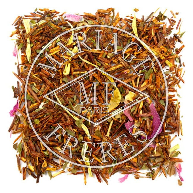 Herbata Mariage Frères Rouge Sahara to wyjątkowe połączenie czerwonokrzewu (rooibos), nazywanego czerwoną herbatą, z charakterystycznym aromatem mięty, przywodzącej na myśl gaszące pragnienie napary beduińskich, saharyjskich nomadów. Rooibos jest bogaty w minerały i przeciwutleniacze, a jednocześnie ubogi w garbniki oraz nie zawiera teiny, przez co wyróżnia się łagodnością i brakiem posmaku goryczy. Zestawienie najwyższej jakości czerwonej herbaty z RPA z liśćmi mięty i płatkami róży przynosi niesamowicie harmonijne połączenie. Delikatne, otulające nuty czerwonej herbaty, doskonale łączą się, ze świeżymi, pieprznymi, aromatycznymi nutami mięty, a całość tonuje kwiatowy, musujący efekt płatków róży.