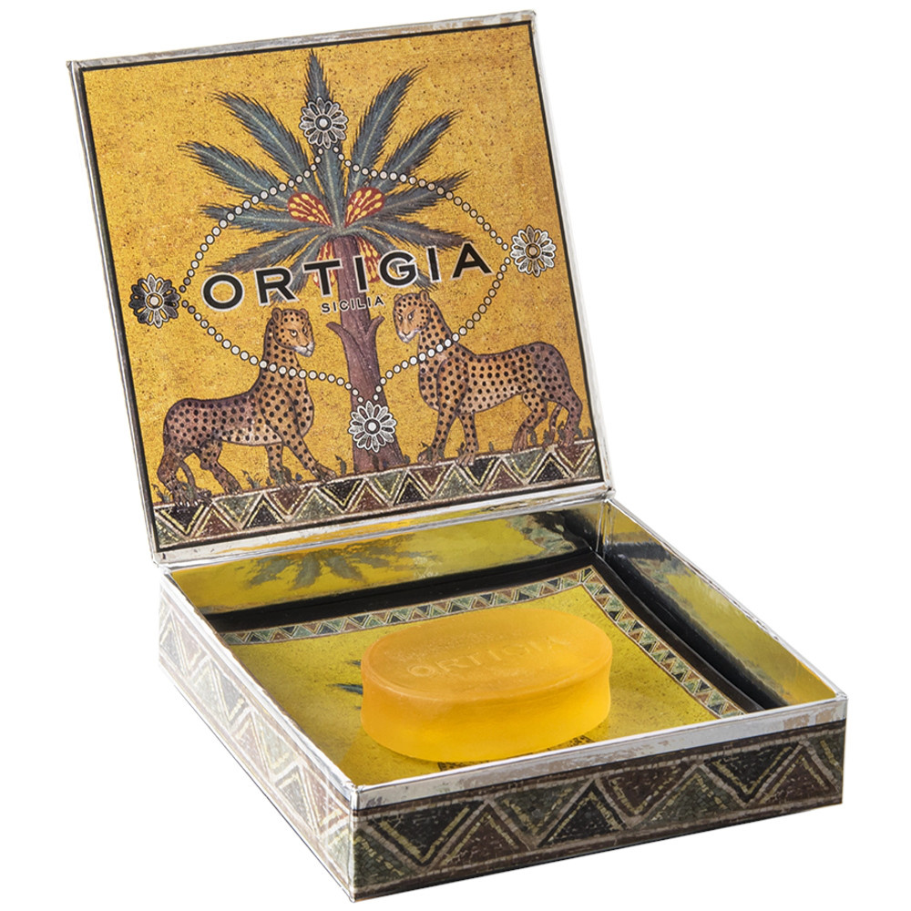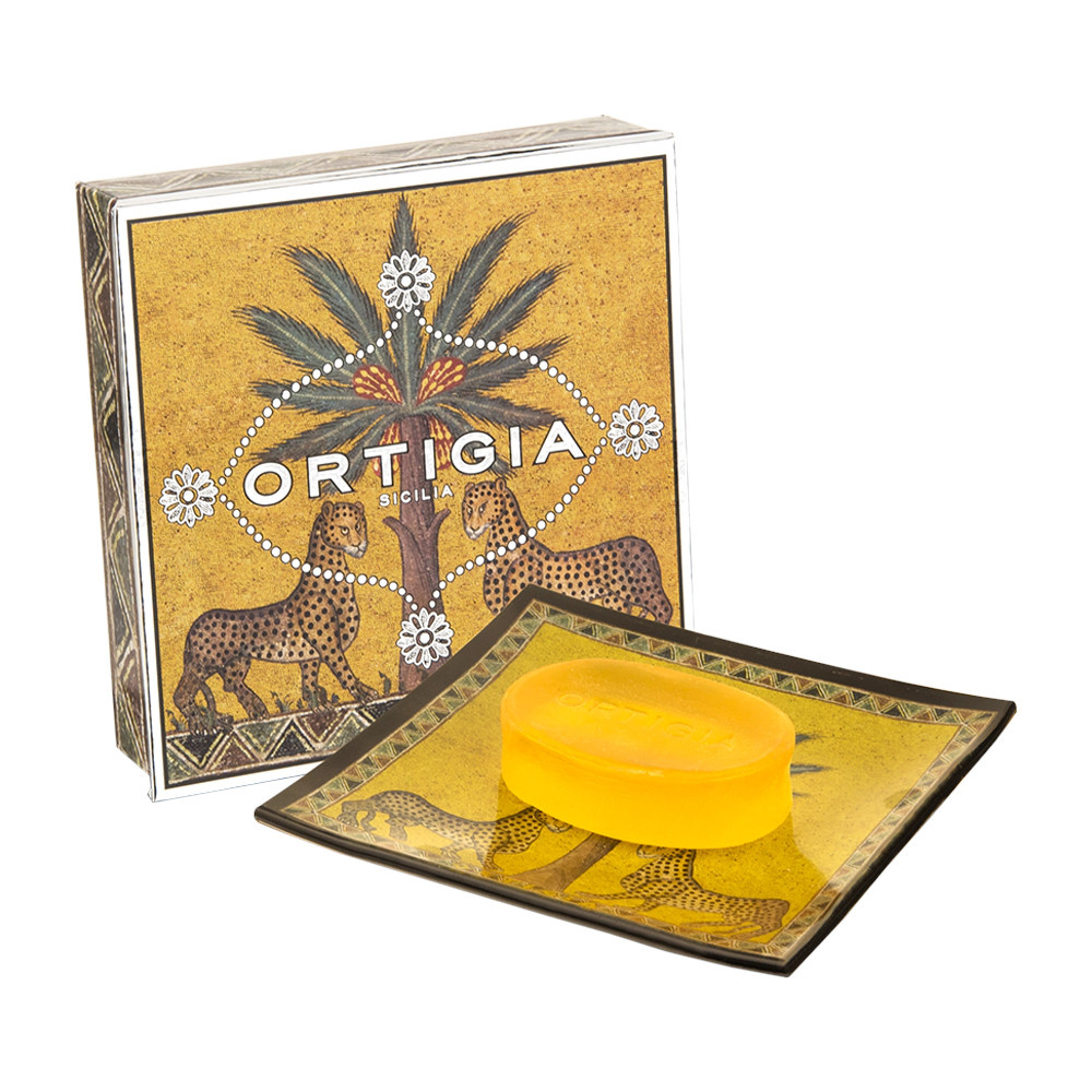 Mydełko w kostce Ortigia Zagara w zestawie ze szklanym talerzykiem, zdobionym motywami charakterystycznymi dla marki. Oparte na naturalnych składnikach mydło pozostawia skórę znakomicie nawilżoną, odświeżoną, wygładzoną i miękką jak jedwab. Perfumowane naturalnymi olejkami dzięki czemu zapewnia wspaniałe doznania zapachowe. Piękne opakowanie i wspaniały kolor uzyskany dzięki naturalnym barwnikom sprawiają, że mydełka Ortigia to cudowny pomysł na drobny podarunek.